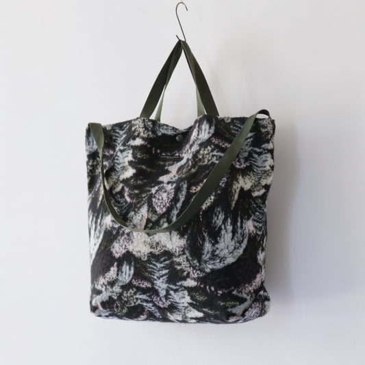 Carry All Tote - Cotton Bird Print Velveteen|Black