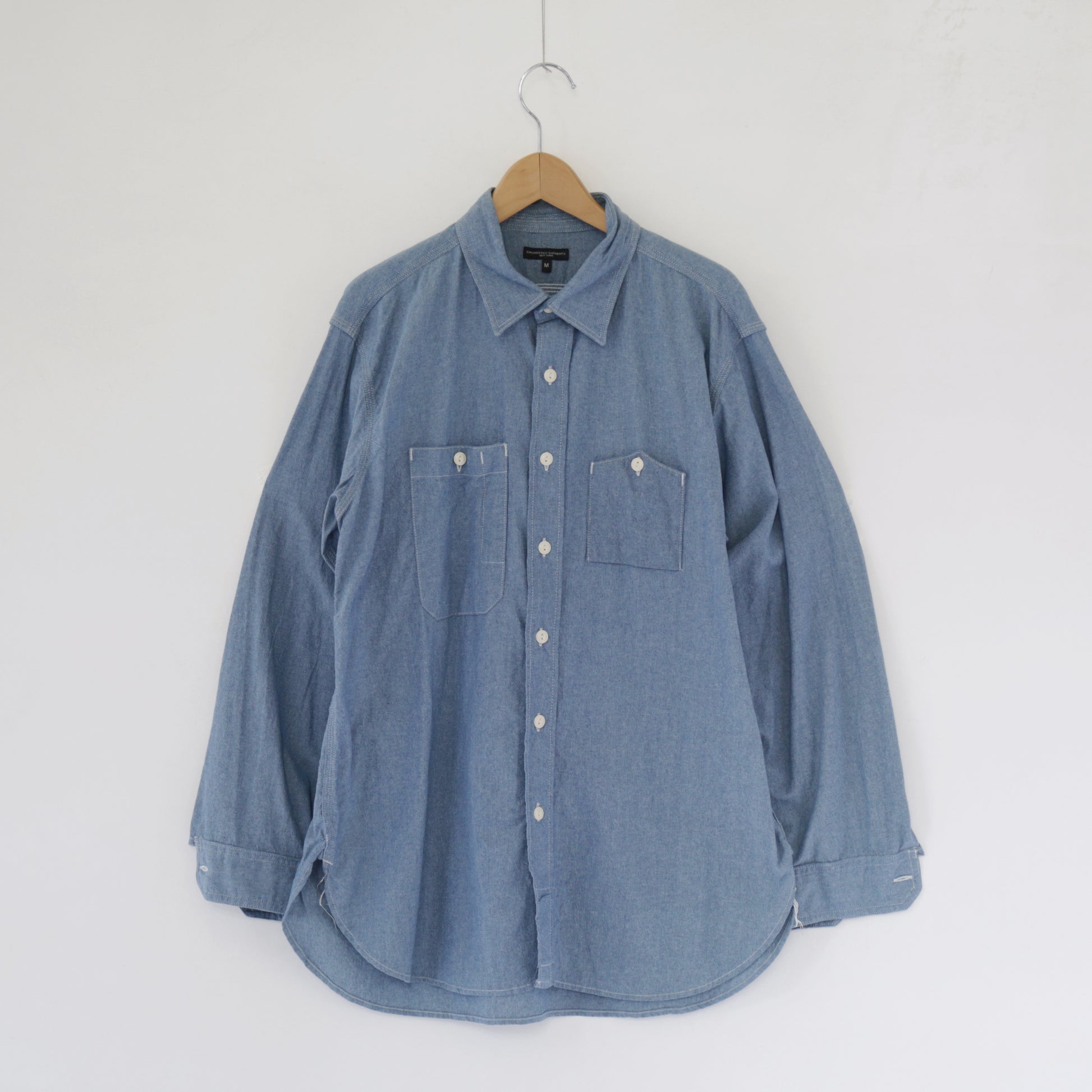の定番シャツ。山型とペン差し付きの左右非対称の胸ポケット、肘の補強布、猫目ボタンなど、ビンテージのワークシャツに見られるディテールが随所に取り入れられています。ステッチワークもシングル、ダブル、トリプルステッチと巧みに使い分けられており、細部にまでこだわったアイテムです。