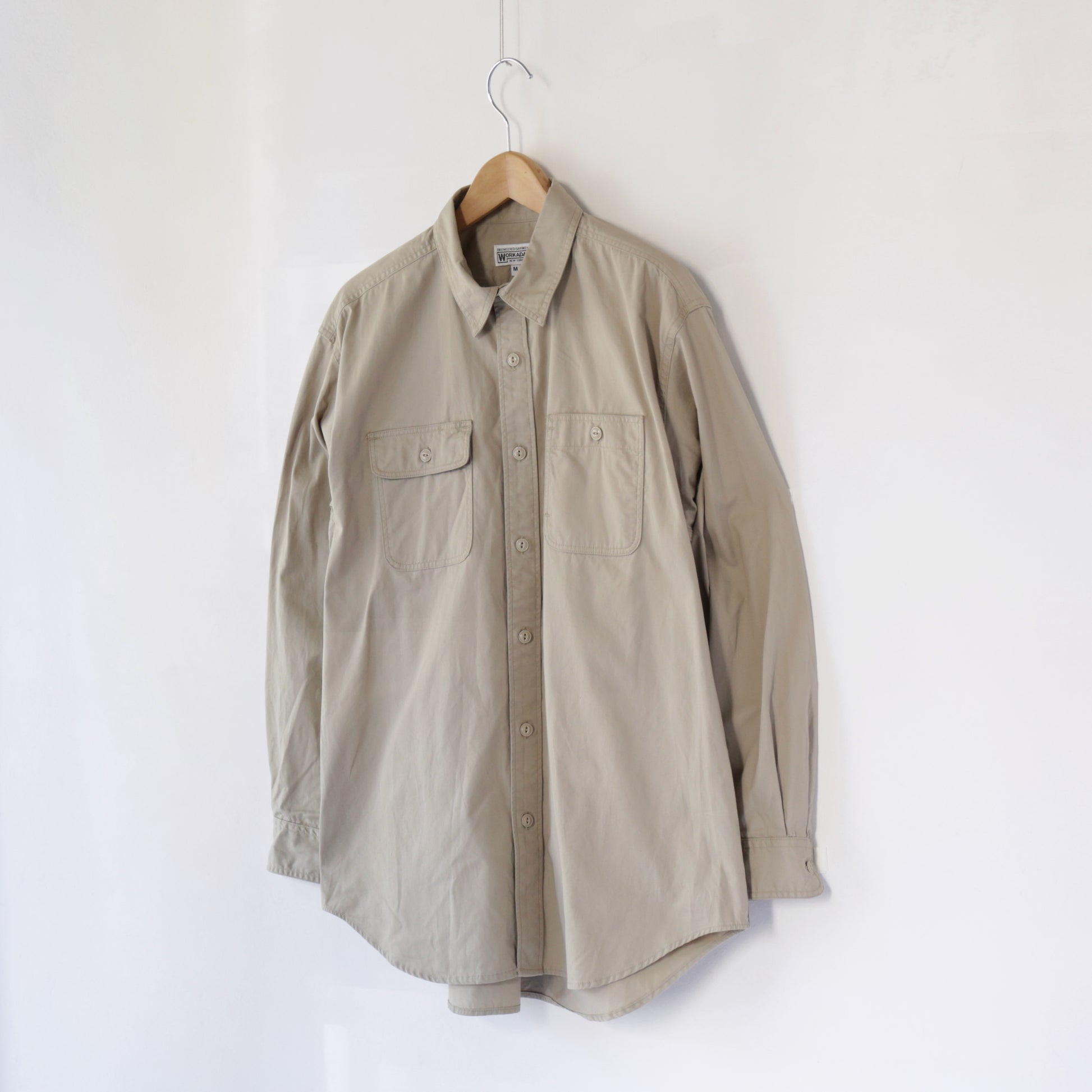 片側フラップの両ポケットワークシャツ。ボタンも同色ネコ目ボタンと隙のない仕様。Cotton MicroSanded Twillファブリックを使用しています。